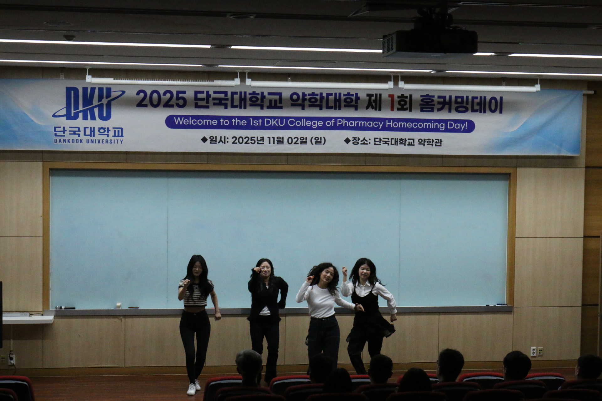 약학대학이 지난 2일(일) 단국대학교 천안캠퍼스 약학관에서 제 1회 홈커밍데이를 성황리에 개최하였습니다. 약학대학 홈커밍데이에는 동문·교원·재학생 등 100여 명이 참석하였습니다. 선후배들이 서로 인사하며 교류의 시간을 가졌고, 선후배 멘토링을 통해 후배들의 진로와 취업, 창업 지원을 위한 생생한 현장의 이야기를 전했습니다. 이날 재학생들은 다양한 공연을 준비하였고, 선배들은 후배들을 위해 강의실에서는 들을 수 없는 다양한 체험담을 전해주며 화답하였습니다. 또한 약학대학 동문회에서는 후배들을 위해 십시일반으로 발전기금을 모아 전달하기도 하였습니다.