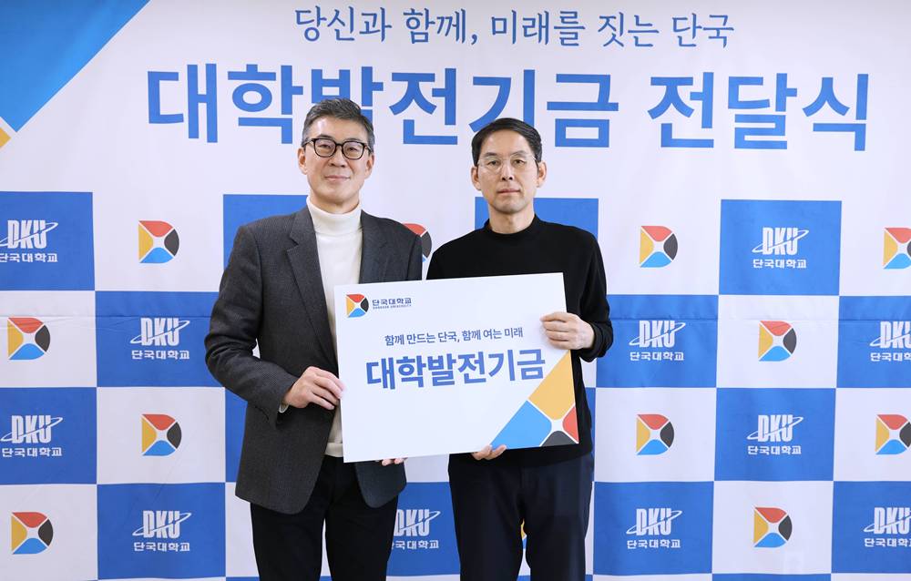 지난 14일(수) 죽전캠퍼스 범정관에서 불교학생회 동문회와 경제학과장학회의 대학발전기금 전달식이 연이어 개최됐다. 이번 전달식은 동문들의 지속적인 나눔을 통해 대학 발전과 후배 양성을 응원하는 뜻을 함께 나누는 자리로 마련됐다. 불교학생회 동문회, 발전기금 1,000만 원 기탁…누적 2,000만 원 △ 불교학생회 동문회 발전기금 전달식 단체사진(왼쪽부터 김재일 대외부총장, 우상진 운영위원, 신은종 대외협력처장) 불교학생회 동문회(명예회장 홍순도, 행정학과 72학번)는 발전기금 1,000만 원을 기탁했다. 작년부터 기부를 시작한 불교학생회 동문회의 누적 기부금은 2,000만 원이 됐다. 기부금은 불교동아리의 안정적인 운영과 학생 활동 지원을 위해 활용될 예정이다. 전달식에는 김재일 대외부총장, 신은종 대외협력처장, 우상진 운영위원(건축공학과 79학번) 등이 참석해 기부의 의미를 더했다. 우상진 동문은 “불교학생회가 앞으로도 학생들에게 정신적 쉼과 성찰의 공간으로 자리하길 바라는 마음에서 뜻을 모았다”며 “후배들이 안정적인 환경에서 다양한 활동을 이어가는 데 작은 힘이 되길 바란다”고 밝혔다. 경제학과장학회, 발전기금 1,000만 원 기탁…누적 1억 6천여만 원 △ 경제학과장학회 발전기금 전달식(왼쪽부터 신은종 대외협력처장, 이창희 이사, 김재일 대외부총장, 송정환 회장, 김명중 이사, 서문석 이사) 이어 경제학과장학회(회장 송정환, 경제학과 87학번)가 경제학과 장학기금으로 1,000만 원을 기탁했다. 이번 기부로 경제학과장학회의 누적 기부액은 1억 6,175만 원에 이른다. 전달식에는 김재일 대외부총장, 신은종 대외협력처장, 송정환 장학회장, 서문석 이사(경제학과교수, 경제학과 85학번) 이창희 이사(경제학과 88학번), 김명중 이사(경제학과 07학번) 등이 참석했다. 송정환 회장은 “경제학과 동문들의 정성이 후배들의 학업과 진로 설계에 실질적인 도움이 되길 바란다”며 “앞으로도 장학회를 중심으로 지속적인 나눔을 이어가겠다”고 밝혔다. 김재일 대외부총장은 “동문 여러분의 꾸준한 관심과 후원이 우리 대학의 교육 경쟁력을 높이는 든든한 기반이 되고 있다”며 “기탁해 주신 소중한 발전기금이 학생들의 성장과 대학 발전으로 이어질 수 있도록 책임 있게 활용하겠다”고 감사의 뜻을 전했다.